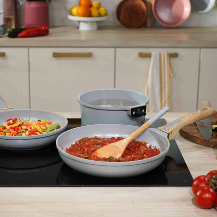 La poêle poignée amovible 28 cm est assortie aux couleurs de la gamme de l'Incroyable Cocotte.
