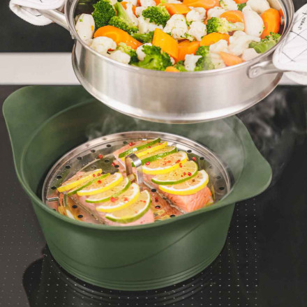 Préparer des plats délicieux, légers et sains avec ce plateau vapeur en acier inoxydable. Il permet une cuisson douce et homogène qui conserve les saveurs et les bienfaits de vos légumes, poissons, papillotes... sans perte de goût.